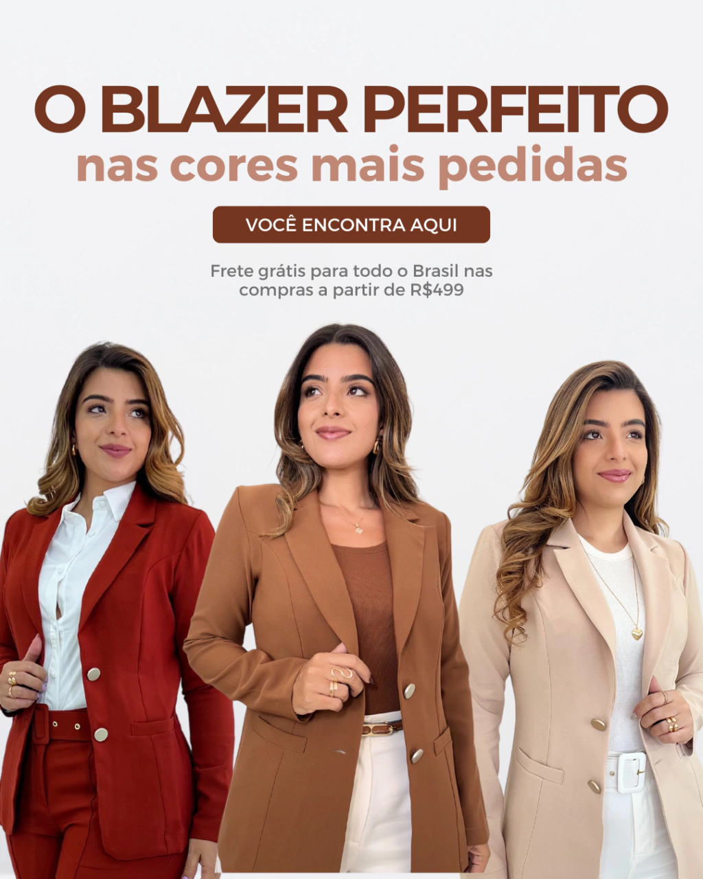 Eu AMEI os blazers, bem acinturado, excelente material, não esquentam muito, perfeitos para o nosso clima do Rio de Janeiro !!!! Rsrs A regata to me surpreendeu, muito boa. Parabéns pela sua dedicação em vender peças com preços acessíveis e de qualidade. Sou fã!